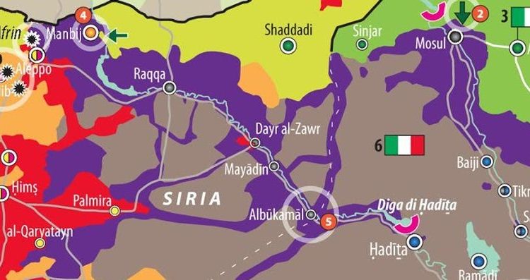 La cartina, pubblicata recentemente da LIMES, mostra la presenza delle truppe italiane vicine a Mossul e alla diga di Mossul (bandiera tricolore). In viola sonoindicati i territori controllati dal Califfato (ISIS o DAESH). L’Iraq è ancora caratterizzato da una grande…
