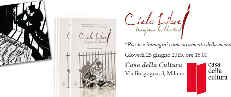 Giovedì 25 giugno 2015 ore 18 Casa della Cultura, Via Borgogna 3, Milano In occasione della presentazione del libro”CIELOLIBRE. Imaginar la libertad” a cura di José Luis Tagliaferro, con illustrazioni di Christian Mirra.  Poesie e immagini come strumento della Memoria,…
