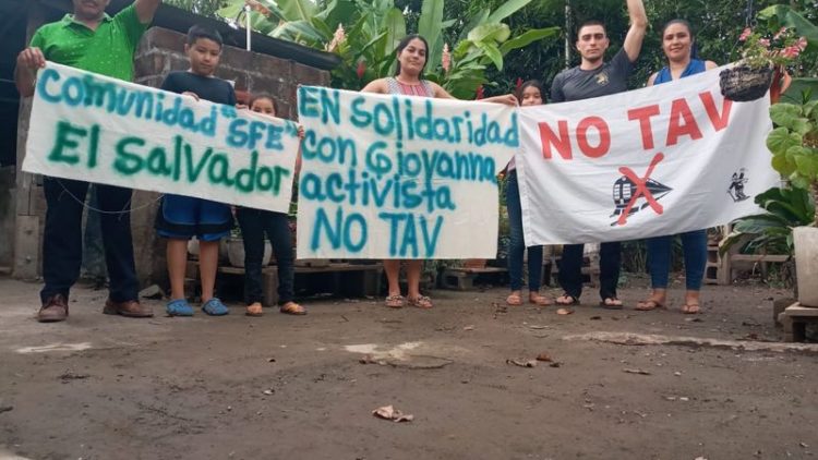 Ricevo dal mio caro amico Valerio della Val di Susa una foto: arriva da El Salvador e si vede uno striscione di solidarietà con Giovanna, ferita nei giorni scorsi da un candelotto sparato dalla polizia. Due mondi a me cari…