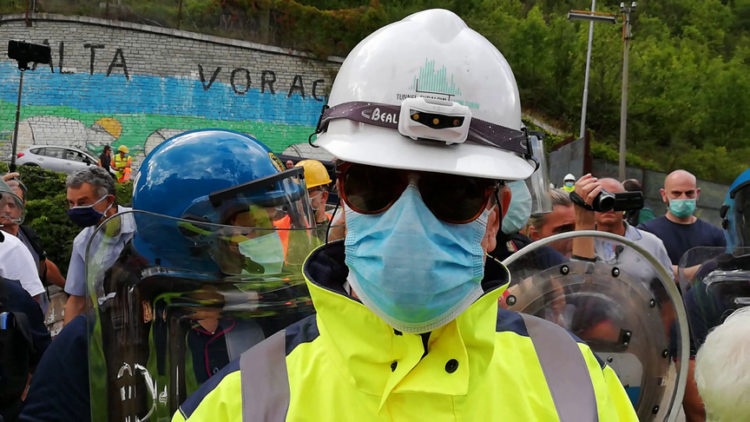 3 agosto 2020, al ponte sul fiume Dora presso la Centrale AEM di Chiomonte: la scena è surreale: una persona di sesso apparentemente maschile con casco da cantiere in testa e tuta da lavoro di colore giallo fluorescente impartisce disposizioni…