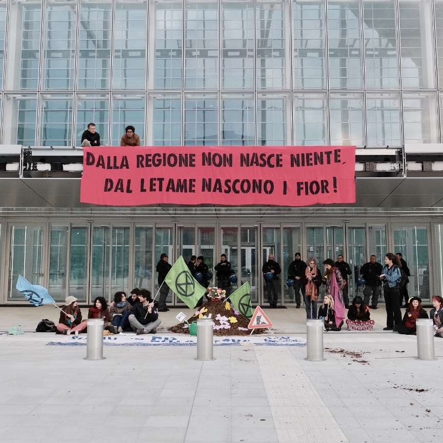 Extinction Rebellion in presidio al Consiglio regionale per la votazione del bilancio