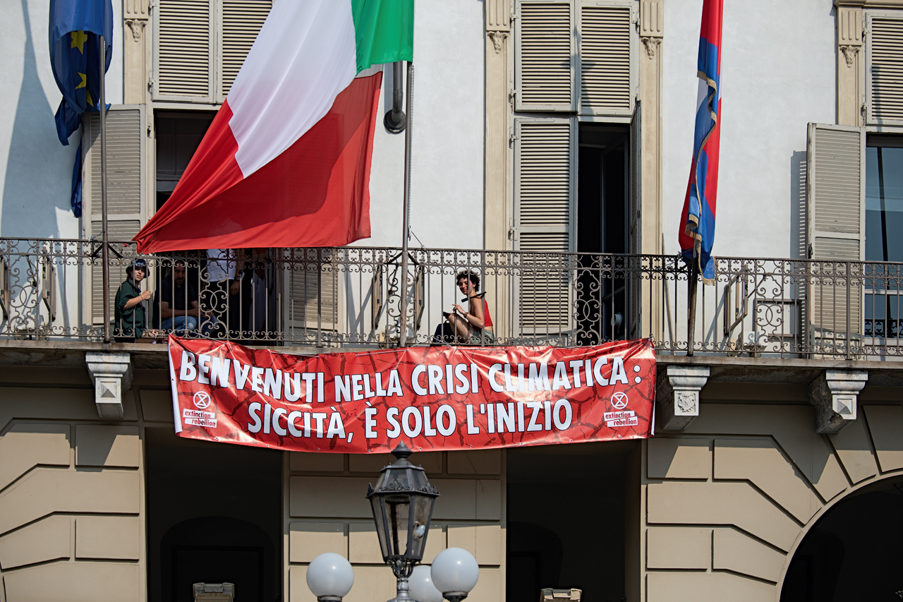 Attivisti di Extinction Rebellion (XR) Torino si sono incollati ai vetri del Palazzo della Regione Piemonte