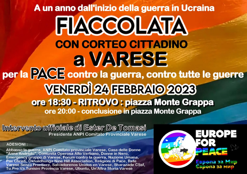 A 1 anno esatto dall’inizio della guerra in Ucraina, anche a Varese si registra una grande mobilitazione per la Pace e la guerra e contro tutte le guerre. Venerdì 24 febbraio si svolgerà una fiaccolata lungo un percorso cittadino: si…
