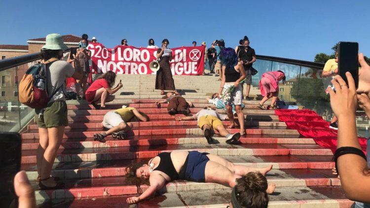 Continuano le proteste nel centro di Venezia: dal ponte di Calatrava ad alcune piazze centrali, attivisti di Extinction Rebellion in azione con litri di sangue finto per denunciare le morti causate dalla crisi climatica ed ecologica di cui governi del…