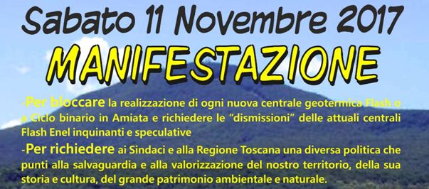 Per sabato 11 novembre è stata indetta una manifestazione dai Comitati in difesa del Monte Amiata, dalla Rete Nazionale Nogesi e da Sos Geotermia contro la   volontà della Regione Toscana di fare dell’Amiata e zone limitrofe un Polo geotermico industriale…