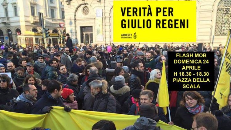 Sabato 24 aprile dalle 16,30 alle 18.30 Piazza della Scala, Milano Il 24 aprile, seconda giornata della XXXI Assemblea Generale di Amnesty International Italia a Milano, anniversario della liberazione d’Italia, ma anche giorno della commemorazione della scomparsa di Giulio Regeni,…