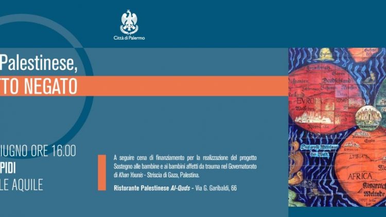 Venerdì 29 giugno ore 16.00 Palazzo delle Aquile – Comune di Palermo Venerdì 29 giugno alle ore 16.00 nella Sala delle Lapidi di Palazzo delle Aquile – Comune di Palermo si terrà l’iniziativa “Lo Stato Palestinese, Diritto negato”, un incontro…
