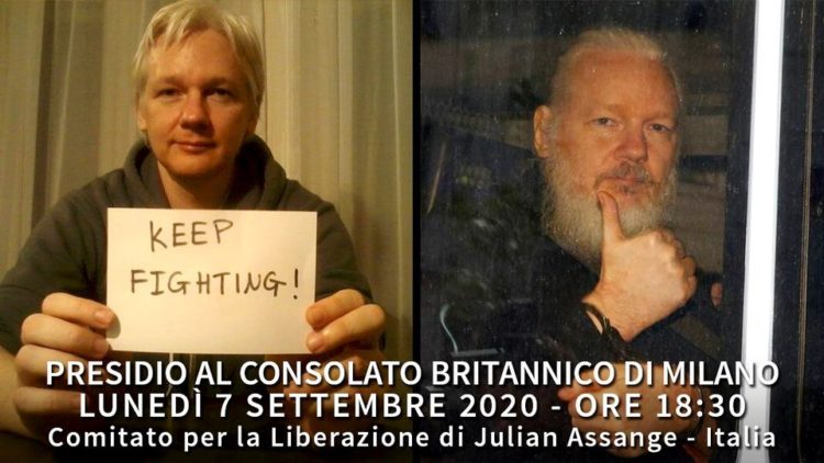 Lunedì 7 settembre alle ore 18.30 a Milano in piazza del Liberty Presidio per la libertà di Julian Assange