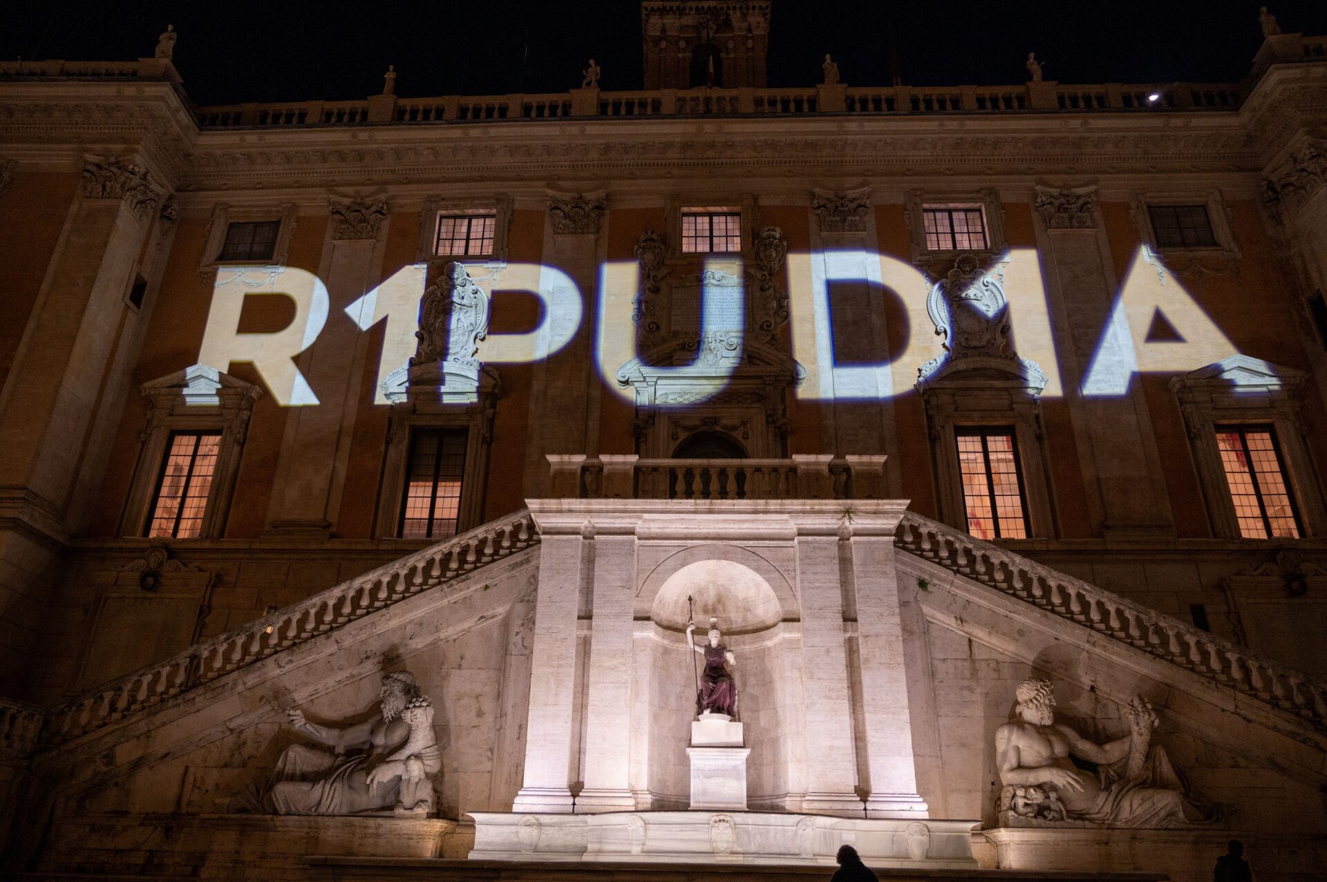 Emergency ha illuminato il Campidoglio a Roma con la scritta R1PUD1A