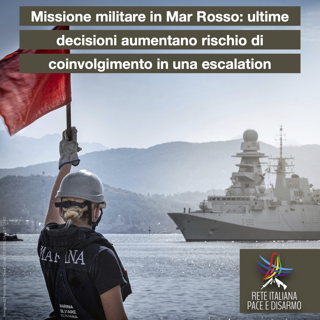 Missione militare in Mar Rosso: ultime decisioni aumentano rischio di coinvolgimento in escalation Rete Pace Disarmo ribadisce la propria preoccupazione per la partecipazione italiana alla missione militare in Mar Rosso, che sta per essere decisa senza un passaggio parlamentare e…