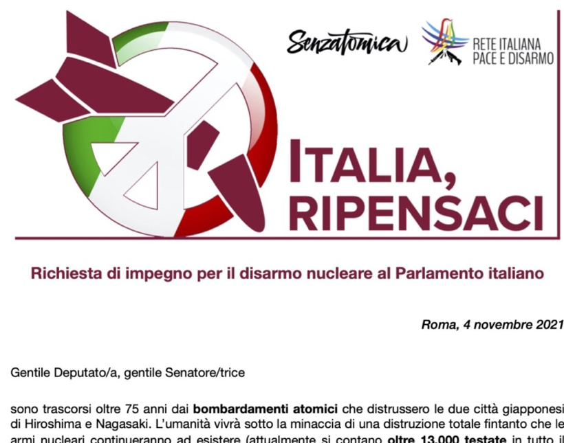 Costruiamo il disarmo nucleare passo dopo passo: “Italia, ripensaci” incontra le città e la politica