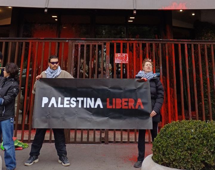 Sabato mattina, alle ore 12.00 sei persone aderenti alle campagne di Palestina Libera e Ultima Generazione hanno compiuto un’azione di disobbedienza civile nonviolenta, lanciando vernice lavabile color sangue contro la sede centrale della Leonardo s.p.a. a Roma. Hanno poi srotolato lo striscione con scritto…