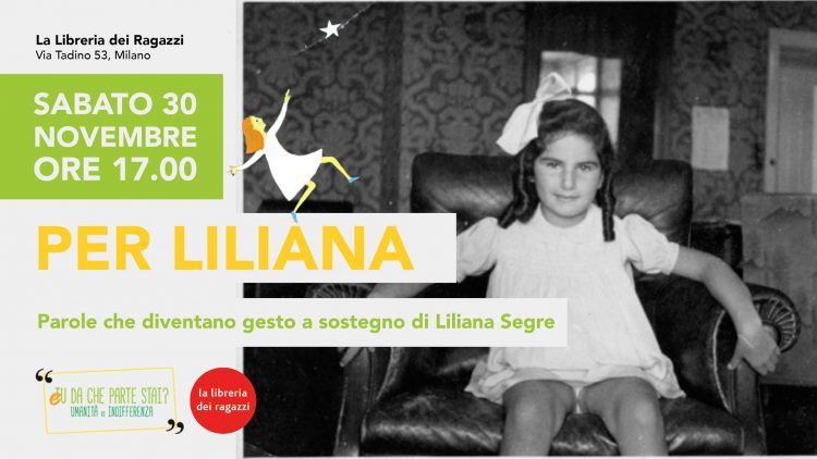 Sabato 30 novembre 2019 dalle 17 alle 18,30 Libreria dei Ragazzi, via Tadino 53, Milano Organizzato da La Libreria dei Ragazzi – Pagina ufficiale e E tu da che parte stai? PER LILIANA Parole che diventano gesto a sostegno di Liliana Segre…
