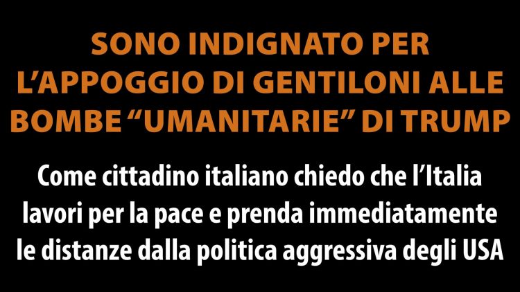 Sono indignato per l’appoggio di Gentiloni alle bombe “umanitarie” di Trump