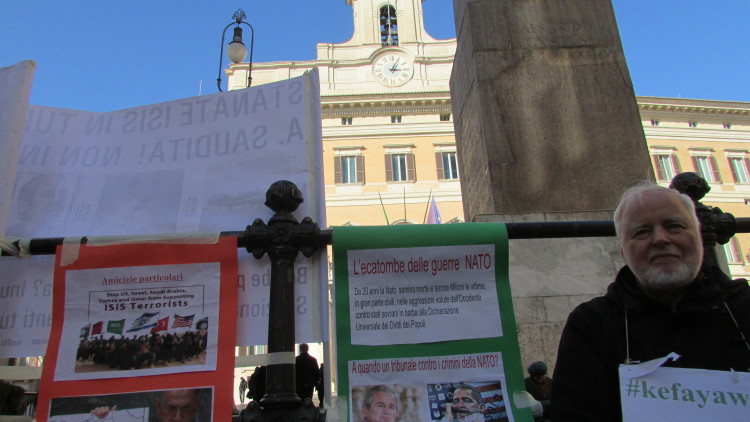 Mercoledì 2 marzo, ore 14-17, un gruppo di pacifisti di Rete No War, Comitato No Nato e Coordinamento contro la guerra x la giornata del 12 marzo ha partecipato al presidio a piazza Montecitorio, sotto lo striscione “Stanate i padrini…