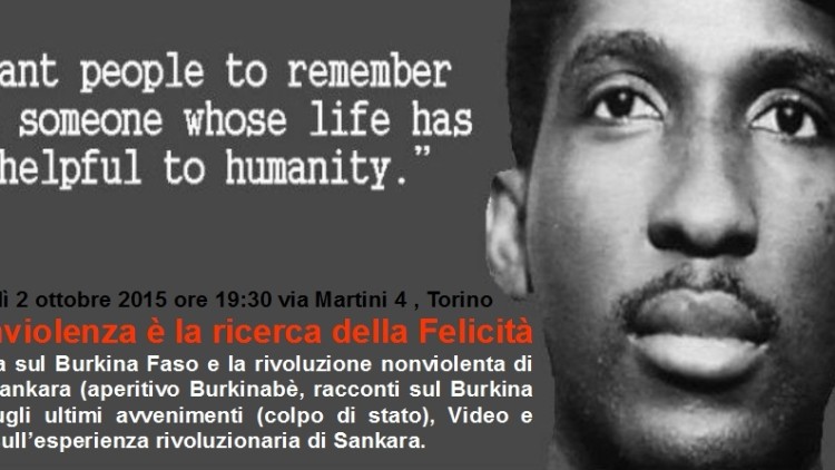 Venerdì 2 ottobre 2015 Ore 19:30 in via Martini 4 (zona Palazzo Nuovo) La nonviolenza è la ricerca della felicità  Una serata sul Burkina Faso e la rivoluzione nonviolenta di Thomas Sankara, che in quest’ultimo anno aveva ripreso vita, ma…