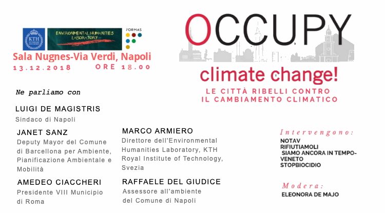 Si terrà giovedì 13 dicembre alle ore 18 presso la Sala Nugnes nella sede del consiglio comunale di Napoli in via Verdi 35, l’incontro “Occupy Climate Change” promosso da Marco Armiero direttore dell’Environmentale Humanities Laboratory del KTH Royal Institute Technology di Stoccolma. L’incontro, incentrato…