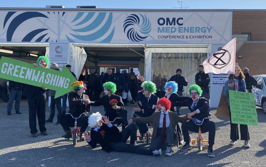 Extinction Rebellion porta un circo alla conferenza OMC MED ENERGY di Ravenna
