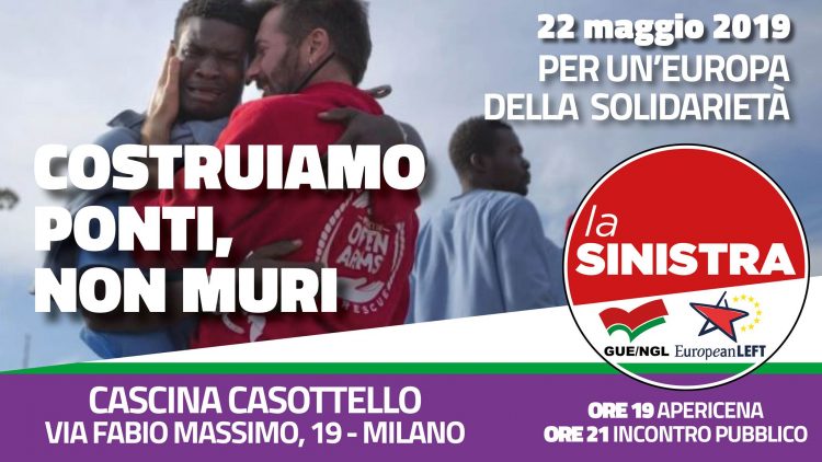 Mercoledì 22 maggio 2019 dalle ore 19:00 alle 23:00 Cascina Casottello, via Fabio Massimo, 19 – Milano L’Europa che vogliamo non lascia annegare i profughi in mare, non paga paesi oltre il Mediterraneo per imprigionarli in campi che il diritto…