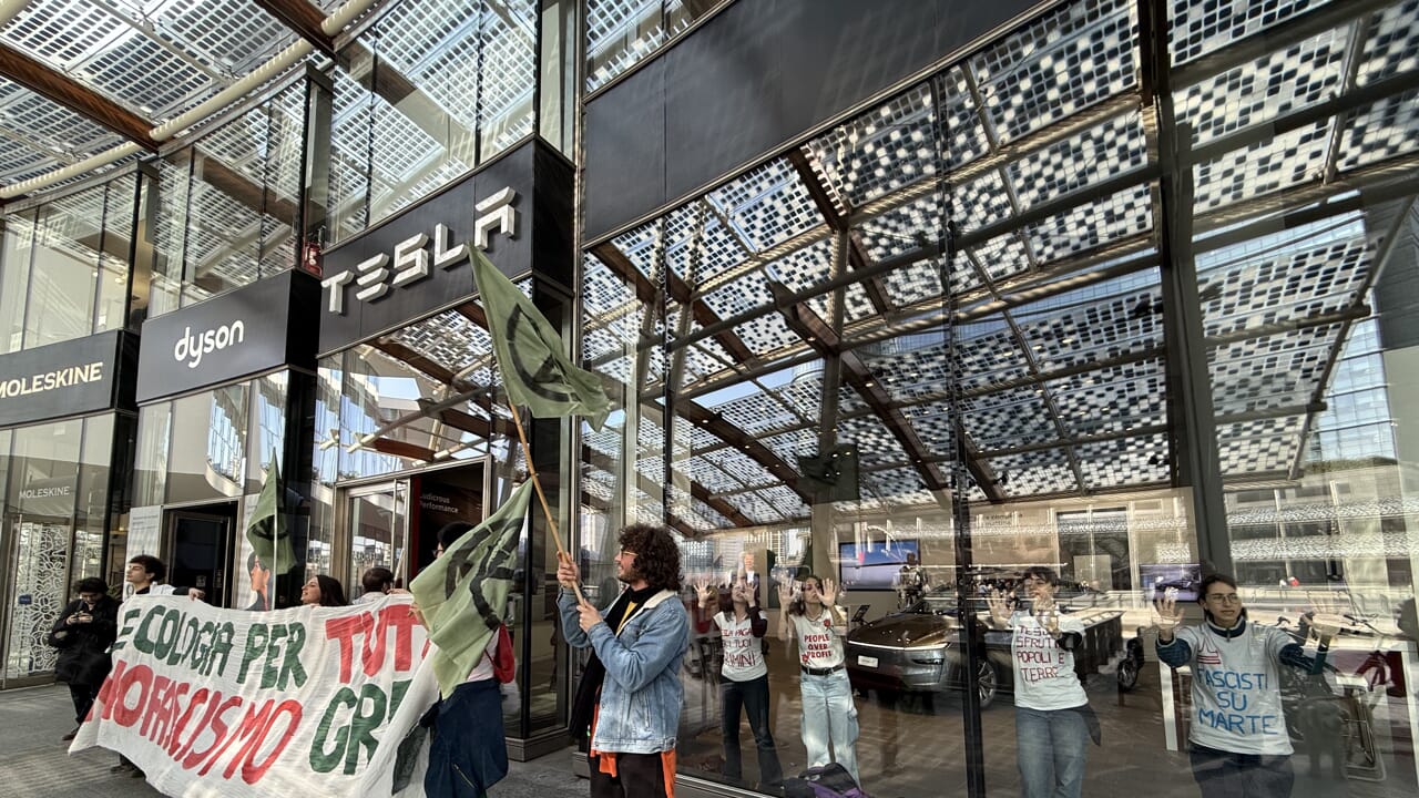 Milano, Extinction Rebellion occupa Tesla Store di Piazza Gae Aulenti