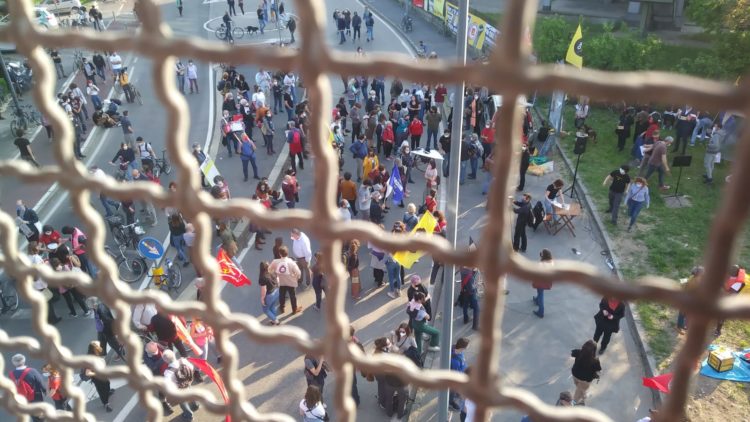 Un bel presidio. Ben preparato, animato, colorato, rumoroso, vivace. Alle 17 e 30 ora d’inizio la situazione non sembra promettere bene: relegati in una curva lungo via Corelli, le auto continuano a passare, tutti relegati su un marciapiede o su…