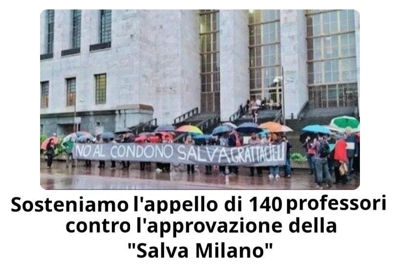 Sostegno all’appello di 140 professori contro l’approvazione della proposta di legge “Salva Milano”