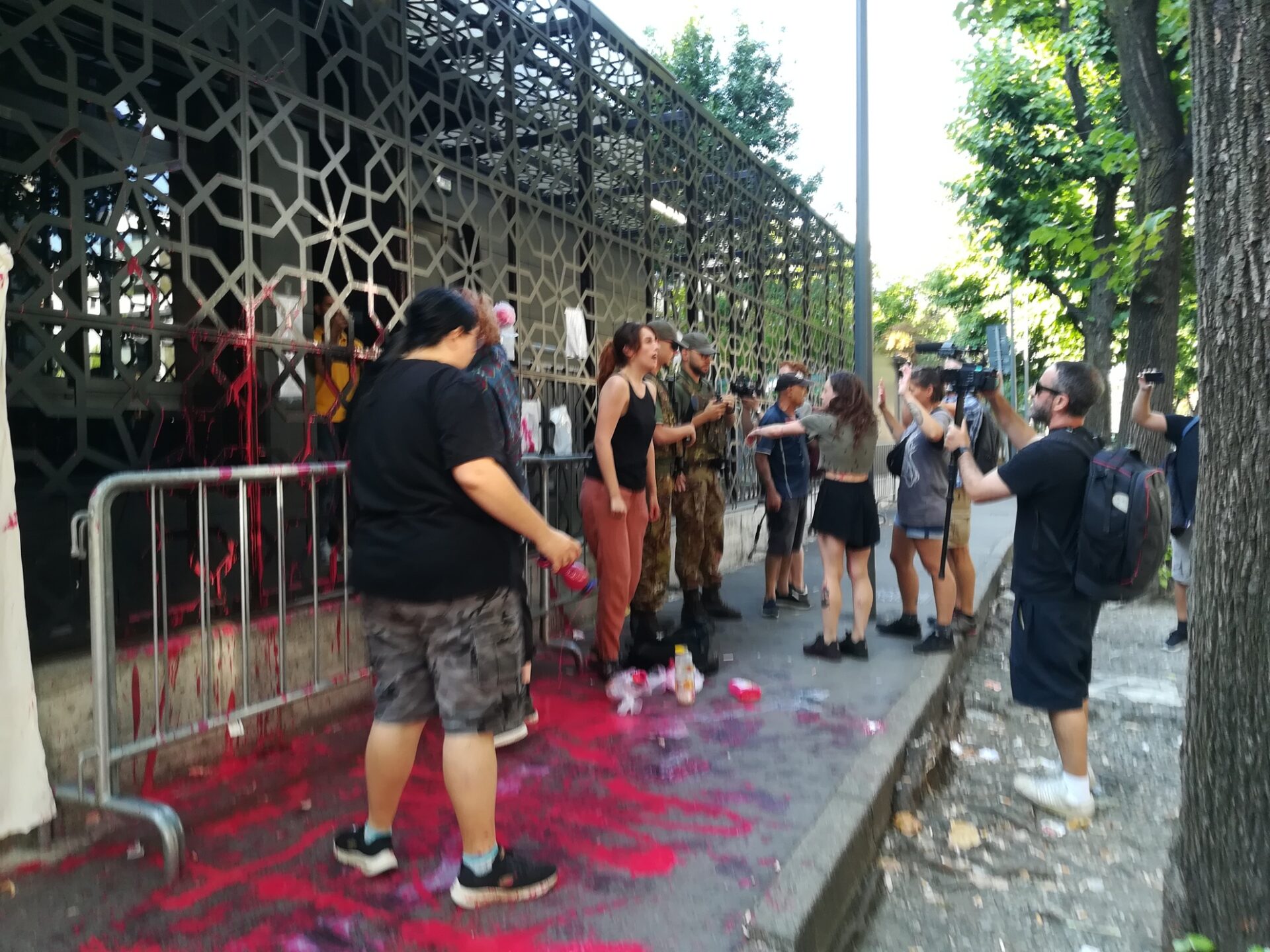 Palestina libera e Ultima Generazione: Milano, consolato egiziano macchiato di vernice rosso sangue