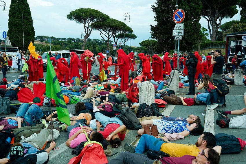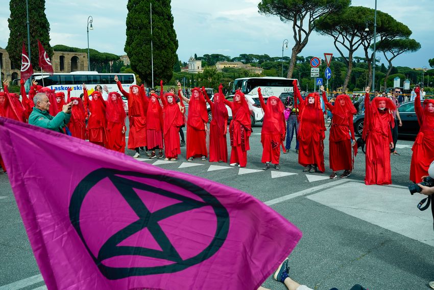 Rebel parade: Extinction Rebellion colora di rosso le strade di Roma con una parata resistente