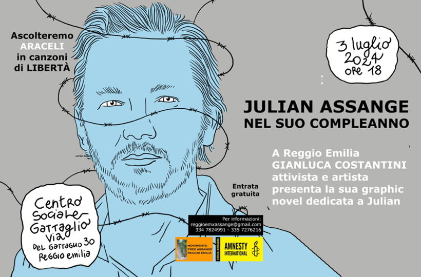 Julian Assange è libero! Reggio Emilia festeggia il suo compleanno