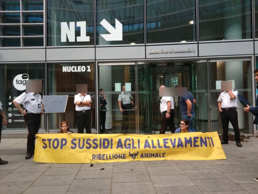 La mattina di venerdì 13 Ottobre tre attiviste di Ribellione Animale hanno bloccato l’ingresso del Palazzo Lombardia a Milano, sede della giunta regionale. Hanno versato del letame all’ingresso e imbrattato le vetrate dell’edificio ostacolando ed ostruendo il normale accesso alla struttura e…