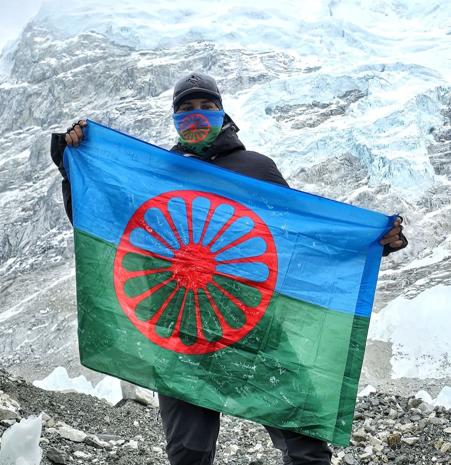 La bandiera romanì arriva per la prima volta sull’Everest: un giorno storico per i rom e sinti di tutto il mondo