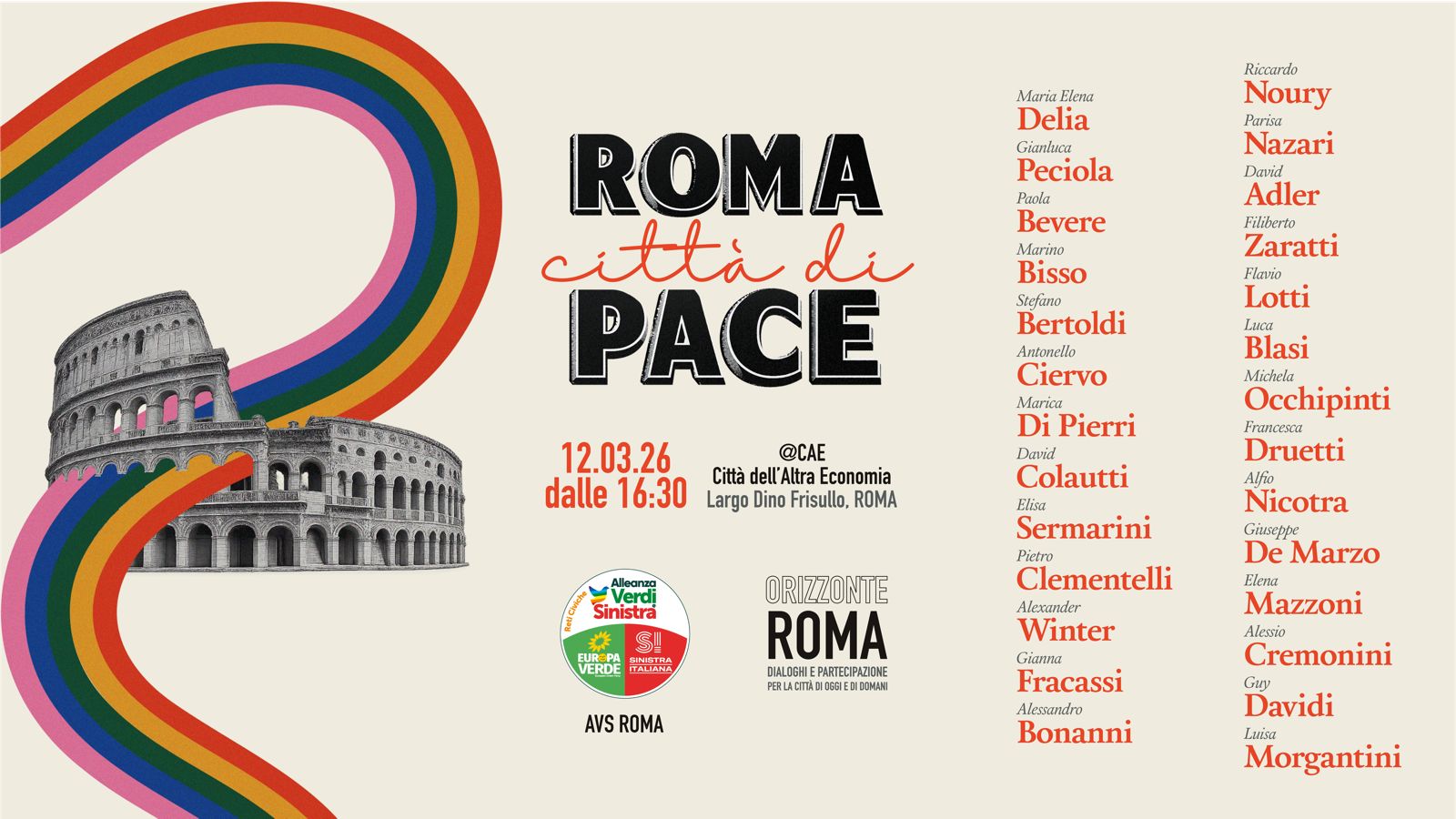 Giovedì 12 marzo a Città dell’Altra Economia, Testaccio, a partire dalle 16:30 fino a tarda sera, AVS Roma organizza un importante momento collettivo ed aperto al pubblico per discutere come fermare la guerra e la torsione bellicista della vita sociale…