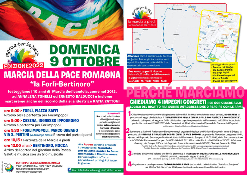 Domenica 9 ottobre unisciti a noi per: ottenere l’approvazione della legge per la Difesa Civile Non Armata e Nonviolenta istituire e finanziare i corpi civili di pace europei ottenere la firma dell’Italia al Trattato di proibizione delle armi nucleari predisporre…