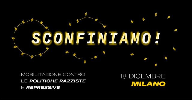 “Sconfiniamo!” è lo slogan che molte realtà in rete, si sono date per manifestare domenica 18 alle 14,30 in p.za Duca d’Aosta a Milano in occasione della Giornata Internazionale del Migrante contro le politiche razziste e repressive. Chi crede nel diritto di tutte e tutti di…