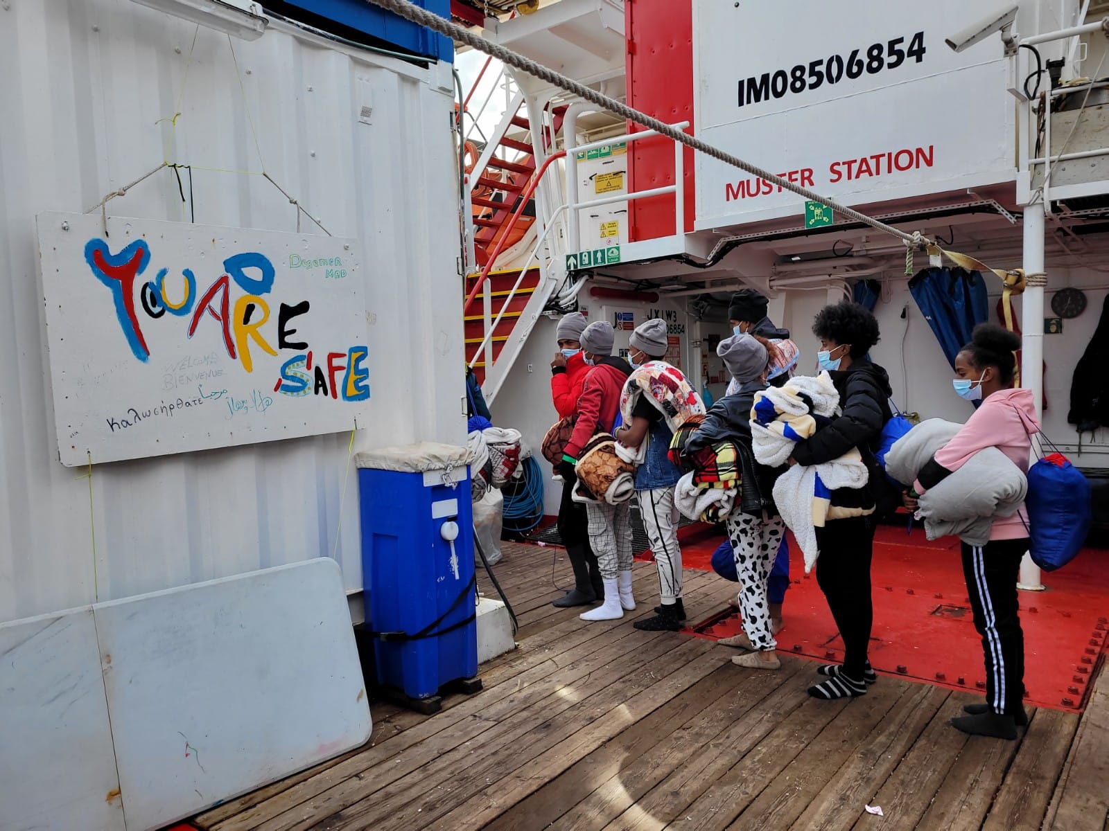 Sbarco a Trapani per i 114 naufraghi salvati dalla Ocean Viking