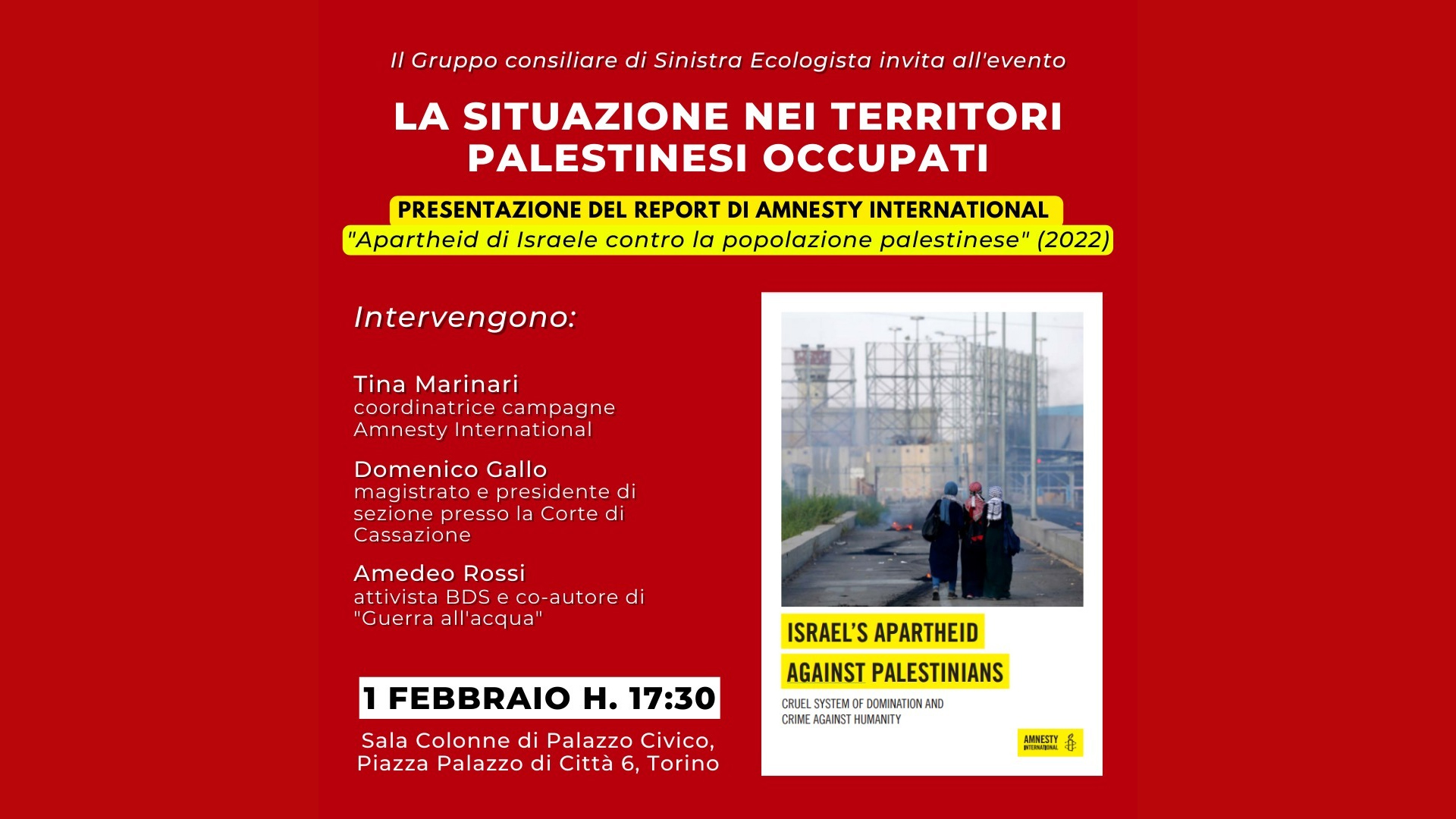 Sinistra Ecologista presenta il report di Amnesty International “Apartheid di Israele contro la popolazione palestinese”