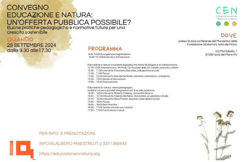 Convegno su integrazione tra educazione indoor e outdoor per una scuola attuale