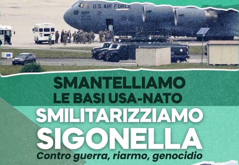 Appello per la manifestazione regionale a Sigonella – domenica 6 luglio alle ore 10,00 – Fermiamo il genocidio del popolo palestinese. Impediamo la terza guerra mondiale ed il riarmo europeo. Smantelliamo le basi Usa-Nato. Smilitarizziamo l’Isola: La Sicilia sarà più…