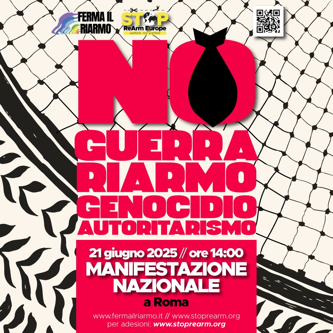 Appello a tutte le organizzazioni per corteo nazionale e mobilitazione permanente contro guerra, riarmo, genocidio e autoritarismo. “Convergiamo il 21 giugno a Roma da tutta Italia in un’unica manifestazione nazionale per fermare Israele, che ha lanciato, rivendicandola pubblicamente, l’offensiva finale…