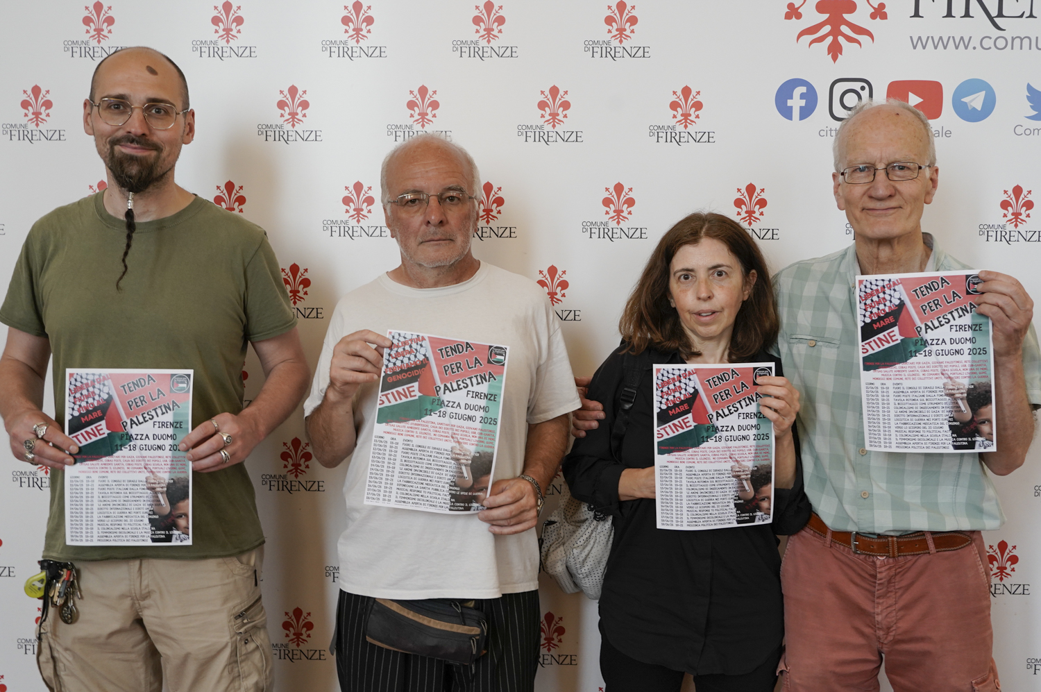 Conferenza stampa stamani in Palazzo Vecchio tenuta da Firenze per la Palestina per annunciare un presidio continuativo per  la Palestina, in piazza Duomo davanti al palazzo  della Giunta Regionale. Dal’11 al 18 giugno nel pomeriggio dalle 15 alle 18 e…