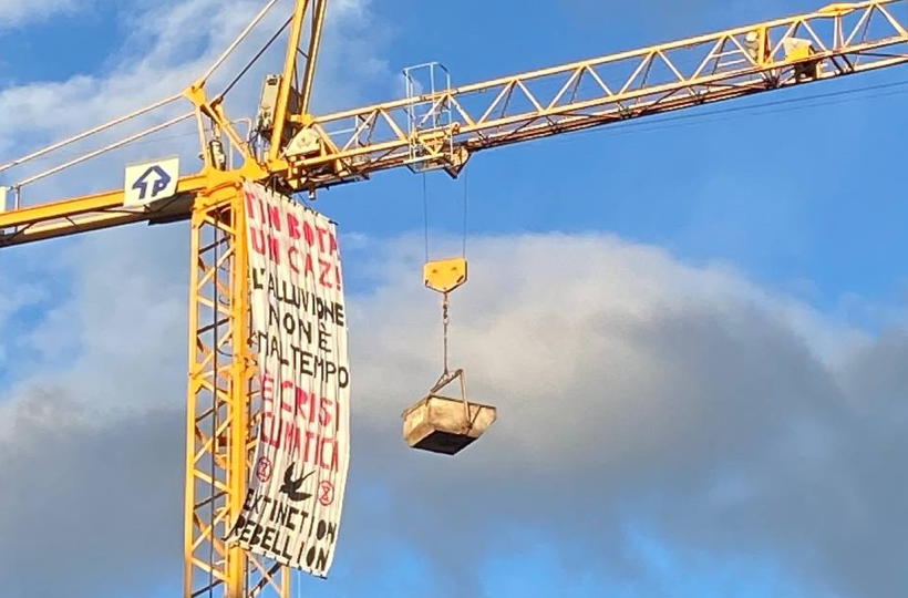 Durante la notte il movimento per il clima Extinction Rebellion ha appeso uno striscione alla gru in piazza della Libertà riportante la scritta “Tin Bota un caz! L’alluvione non è maltempo, è crisi climatica”. Una critica all’assenza di politiche locali…