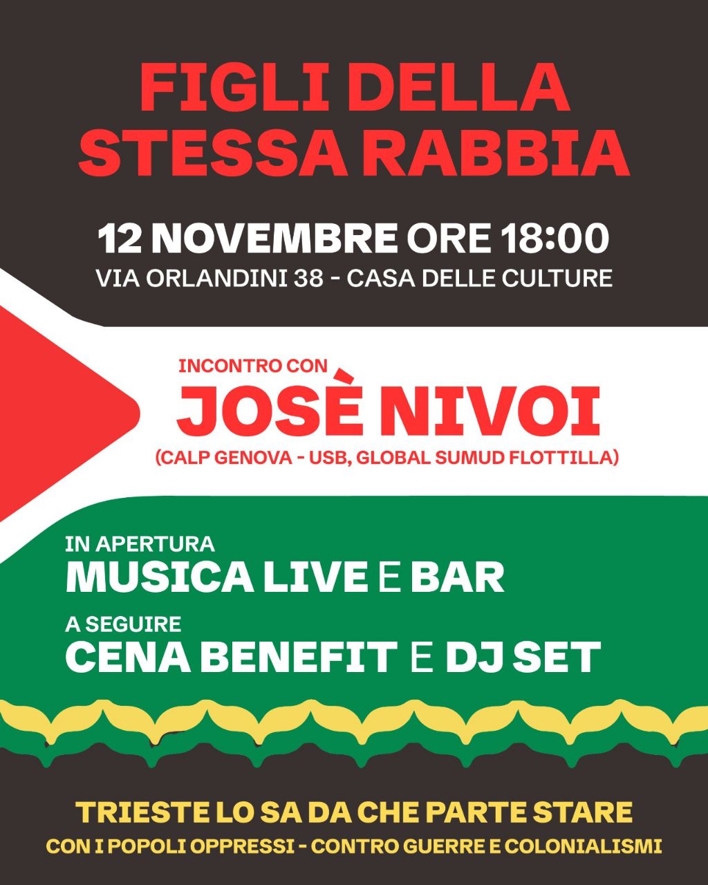 Mercoledì 12 novembre alle 18.00 a Trieste, presso Casa delle Culture, via Orlandini 38, l’Assemblea per la Palestina promuove un incontro con José Nivoi, portuale genovese, membro del Collettivo Autonomo Lavoratori Portuali, protagonista della lotta contro il traffico di armi,…