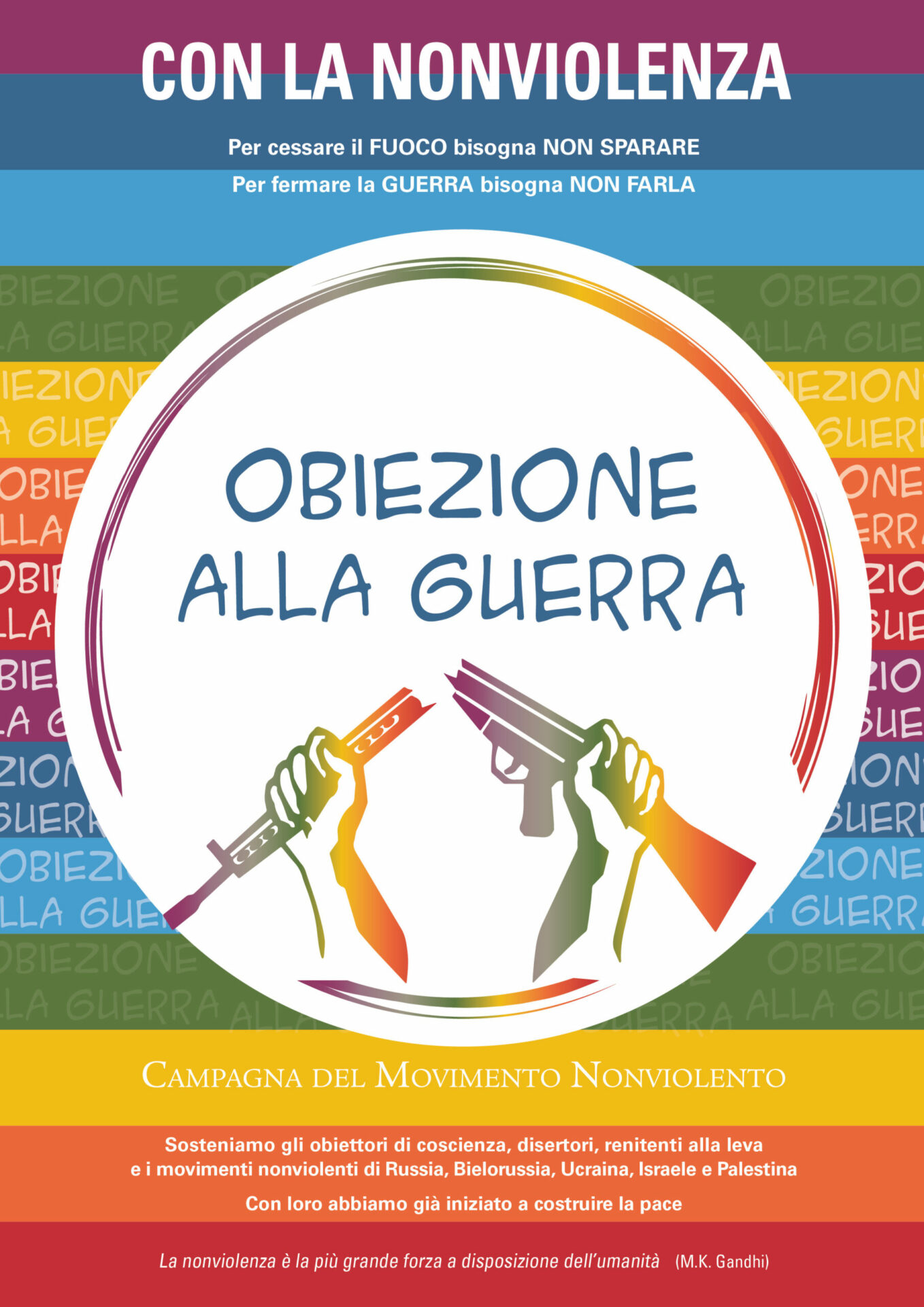 La Campagna di Obiezione alla guerra presenta un nuovo strumento operativo: un poster diffuso a livello nazionale con il simbolo del fucile spezzato e la scritta “Con la nonviolenza: per cessare il fuoco bisogna non sparare, per fermare la guerra…