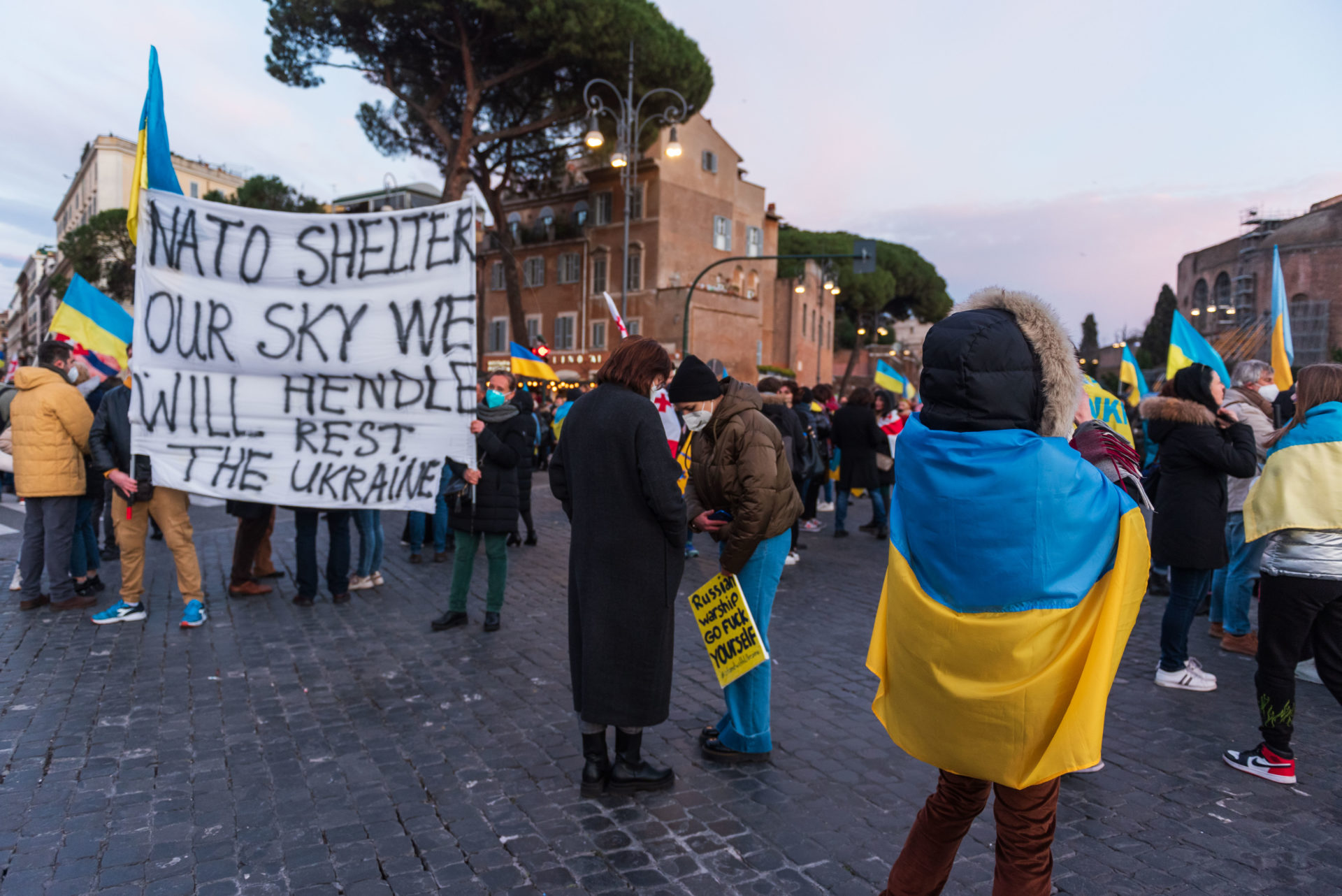 In questi giorni nelle principali città italiane si è manifestato contro l’invasione russa. Ieri, 27 febbraio 2022, a Roma centinaia di manifestanti si sono riuniti per gridare “Stop war” in Ucraina. Fotoreportage di Claudia Rolando