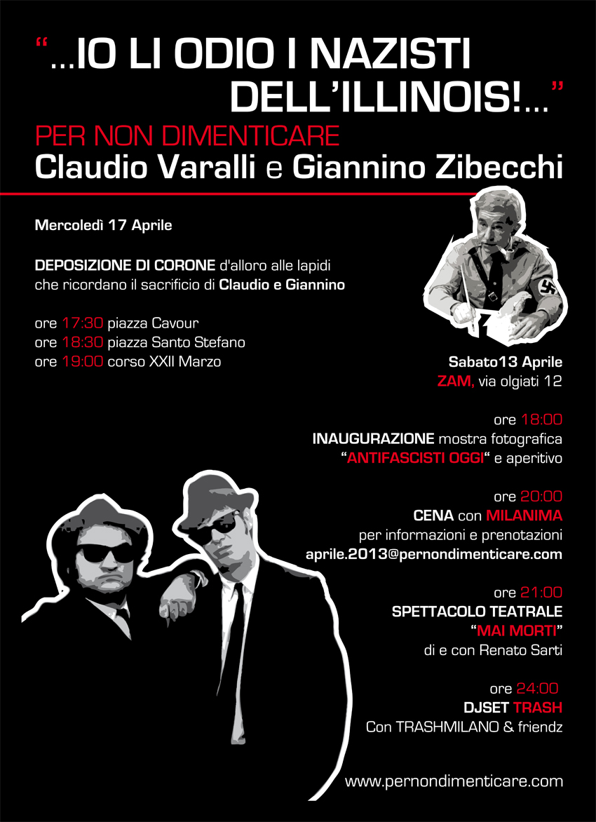 Il 16 e 17 aprile prossimi saranno esattamente 40 anni da quando due giovani antifascisti milanesi, Claudio Varalli e Giannino Zibecchi, furono assassinati nelle strade di Milano. Claudio morì a 18 anni, ammazzato dai colpi di pistola esplosi da un…