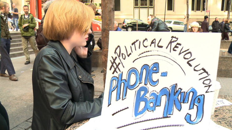 New York, Zuccotti Park: attivisti telefonano a possibili votanti in nome di Sanders