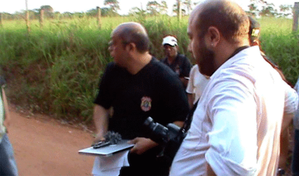 Foto: Reprodução (O jornalista Ruy Sposati observa o delegado da PF Alcídio Araújo no momento da apreensão dos equipamentos)