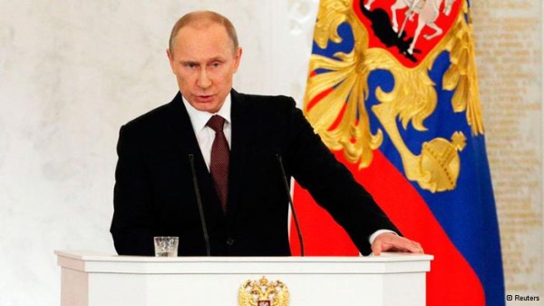 “Nos corações e nas mentes do povo, a Crimeia sempre foi e continua sendo uma parte inseparável da Rússia”, disse Putin. “Na Crimeia estão os túmulos de soldados russos e a cidade de Sebastopol é a pátria da Frota do Mar Negro”, disse, fortemente aplaudido pelos deputados e senadores.