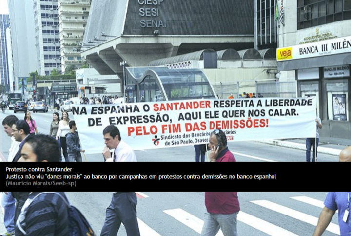A ação contestava uma campanha conduzida pelas entidades, de denúncia contra demissões promovidas pelo banco espanhol feitas por ocasião da decisão da Taça Libertadores da América de 2011, entre Santos e Peñarol, no estádio do Pacaembu, em São Paulo. O jogo da final da competição patrocinada pelo Santander, em 22 de junho daquele ano, teve a presença do então presidente mundial da instituição financeira, Emilio Botin. O executivo, morto em setembro de 2014, assistiu à partida ao lado de Pelé, garoto-propaganda do banco.