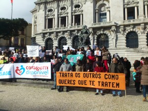 Foi uma tarde fria na cidade do Porto e, nesse contexto, podia ler-se num dos cartazes empunhados por um dos manifestantes a seguinte pergunta: “Também querias viver num acampamento em dias frios assim?…” Além desta frase, outras palavras de ordem exibidas eram “trata os outros como queres que te tratem” e “nenhum refugiado me é estranho”, dando conta da solidariedade e compaixão que animavam os presentes.